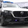 スゴッ! マツダが「高級パトカー」公開! ”白黒パンダカラー×青色灯”採用の注目SUV!? 発売直後の「CX-80」が展示された