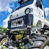 「V8」搭載の「軽トラ」!? 車高爆上げ&巨大タイヤ装備で「縮尺おかしい」モンスタートラックの正体とは