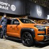 ヒロミも「イイよ!イイ感じ!」 全長5.3m超え「ド迫力ミツビシ車」初公開! 鮮烈オレンジדブラックパーツ”がカッコイイ「トライトン」カスタムを披露 TASで展示へ