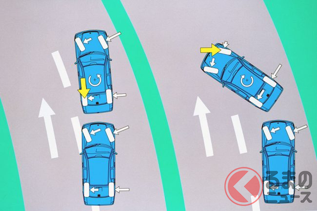 横滑り防止装置とは、クルマがコーナリング中における姿勢を安定させる予防安全の装置だ。