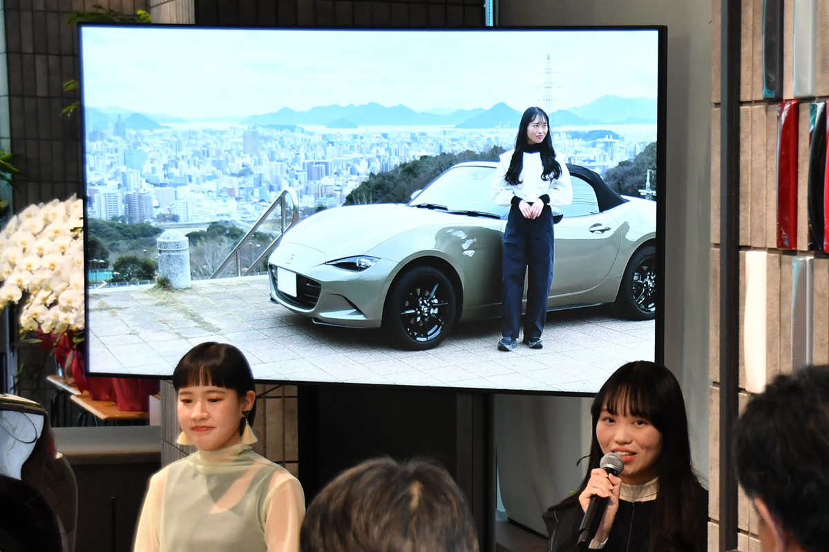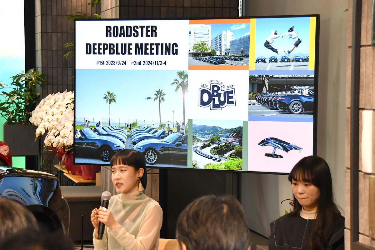 トークショーには、現行型のNDロードスターの開発主査である齋藤茂樹さん、デザイン本部の岩内義人さんに加えて、実際にロードスターを所有していて、かつボディカラーにこだわりのある3人の女性オーナーが登壇し、マツダ開発陣とデザイナー、ロードスターのオーナーが一緒になってトークを繰り広げました。