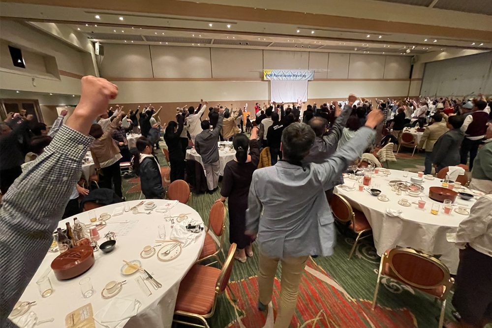 プリンスホテルの宴会場で実施される夕食会でもある前夜祭には、今年も約250人が参加。広島から駆けつけた、ロードスターの開発責任者である齋藤茂樹氏をはじめ、マツダを定年退職した元開発者である山本修弘氏や貴島孝雄氏らマツダ関係者も多数参加しており、ともに食事を楽しみました。例年通り、アットホームでリラックスした前夜祭となっていました。