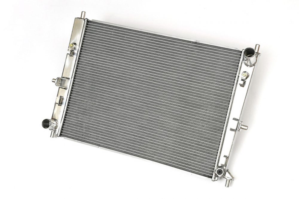 まず「スポーツラジエター」(7万8529円)は、オールアルミ製の2層コアを採用。厚み36ミリ・フィンピッチ3.5ミリという設計によって、純正品と比べて放熱量を18パーセント改善していると言います。