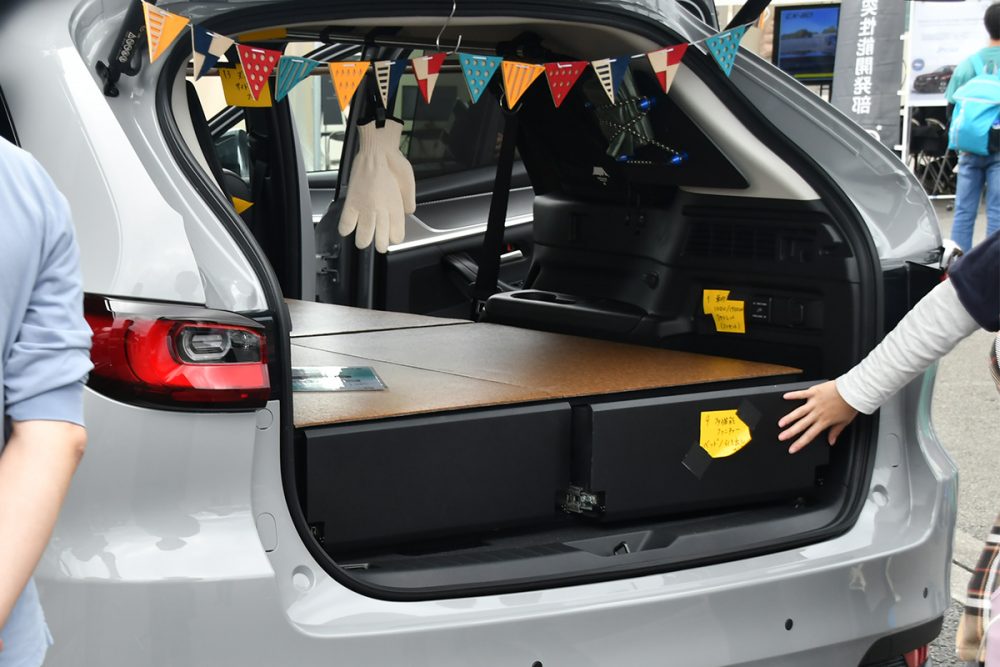 ちなみにこのルーフトップテントの構造は、CX-60やCX-80のパトロールカーを手がけるマツダE&Tの技術が応用されており、パトロールカーのルーフに備わる大型の表示板やパトライトを搭載するための知見が生かされているんだとか。