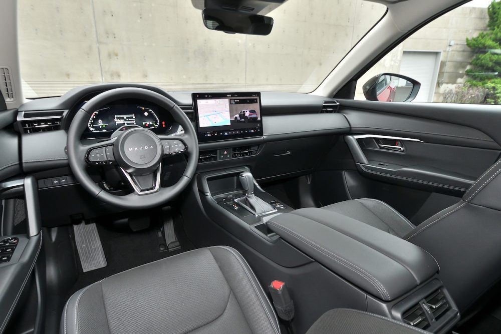 そして新型CX-5に関して筆者がもうひとつ感じたこと。それは、インターフェイスの大革命です。マツダがあれだけこだわっていた「タッチパネルではなく物理スイッチへのこだわり」と「視認性のために遠くへ置いたモニター」をやめ、ついに物理スイッチを大幅に廃止しつつ大きなディスプレイ(12.9インチもしくは15.6インチ)をドライバーの近くへ置き、タッチパネル操作への大転換を図ったのですから。