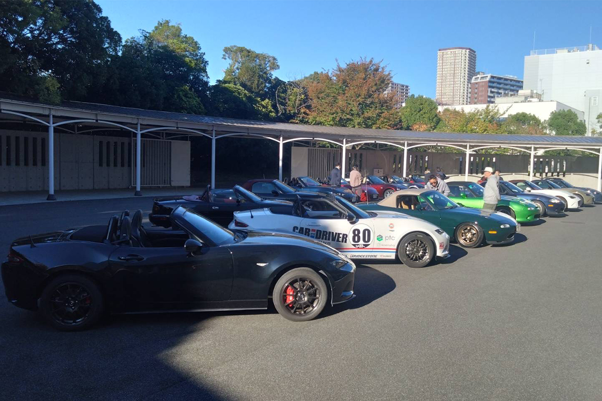近所に住む同業者のロードスター仲間数人と集まるような小規模なものに始まり、先日はロードスターに乗る自動車メディア関係者に声をかけてのオーナーズミーティングも実施。20台ほどのロードスターが集まりました。