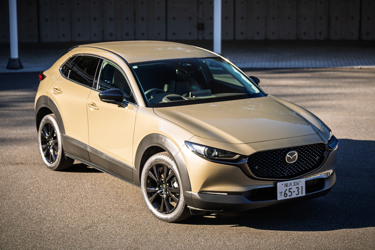 CX-30も他車種と同様に外装は黒基調に仕上げられています。アルミホイールやシグネチャーウィング、ドアミラーをブラック仕上げとしたほか、レザーシートには黒革・白革を、ドアトリムには合成皮革を採用しています。