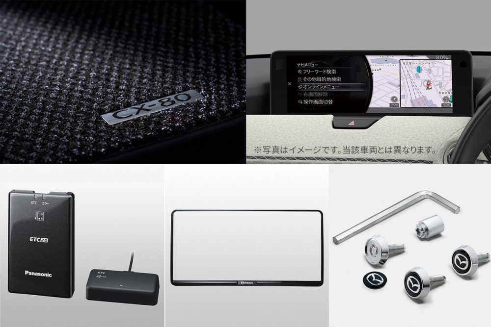 まずは「MAZDAフロアマット(プレミアムプラス)」(13万7170円)。内装の質感を高めると同時に、日常使いではほぼ必須といえる装備です。さらにケンウッド製の「純正ドライブレコーダー」(前後2カメラ・8万3952円)と、パナソニック製の「ETC2.0ユニット」(光ビーコン付、ナビゲーション連動・6万2920円)を追加します。