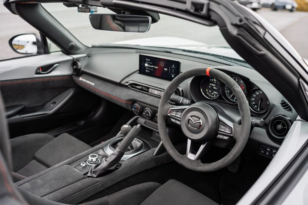 今回試乗した12Rは純正状態でもスペシャルな1台ですが、さらにスポーツ走行に適した仕様を求めるユーザーに向けたアフターパーツ「MAZDA SPIRIT RACING SPORTS PACKAGE(マツダ スピリットレーシング スポーツパッケージ)」がすべて装着された車両です。開発陣がこだわり抜いて厳選したパーツ類が、どのようなフィーリングをもたらすのかにも注目していきます。