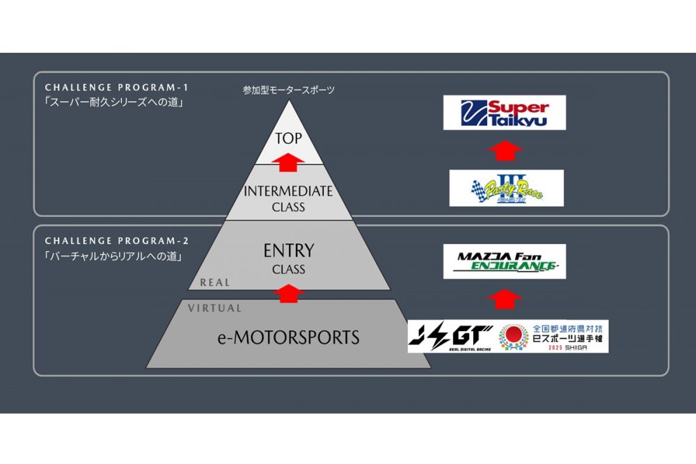 倶楽部MAZDA SPIRIT RACING(マツダ スピリット レーシング)チャレンジプログラムは、「バーチャルからリアルへの道」と「スーパー耐久シリーズへの道」で構成されます。「バーチャルからリアルへの道」は、eSPORTS(イースポーツ)の世界で活躍する選手に、リアルモータースポーツを体験する機会を提供するプログラムです。