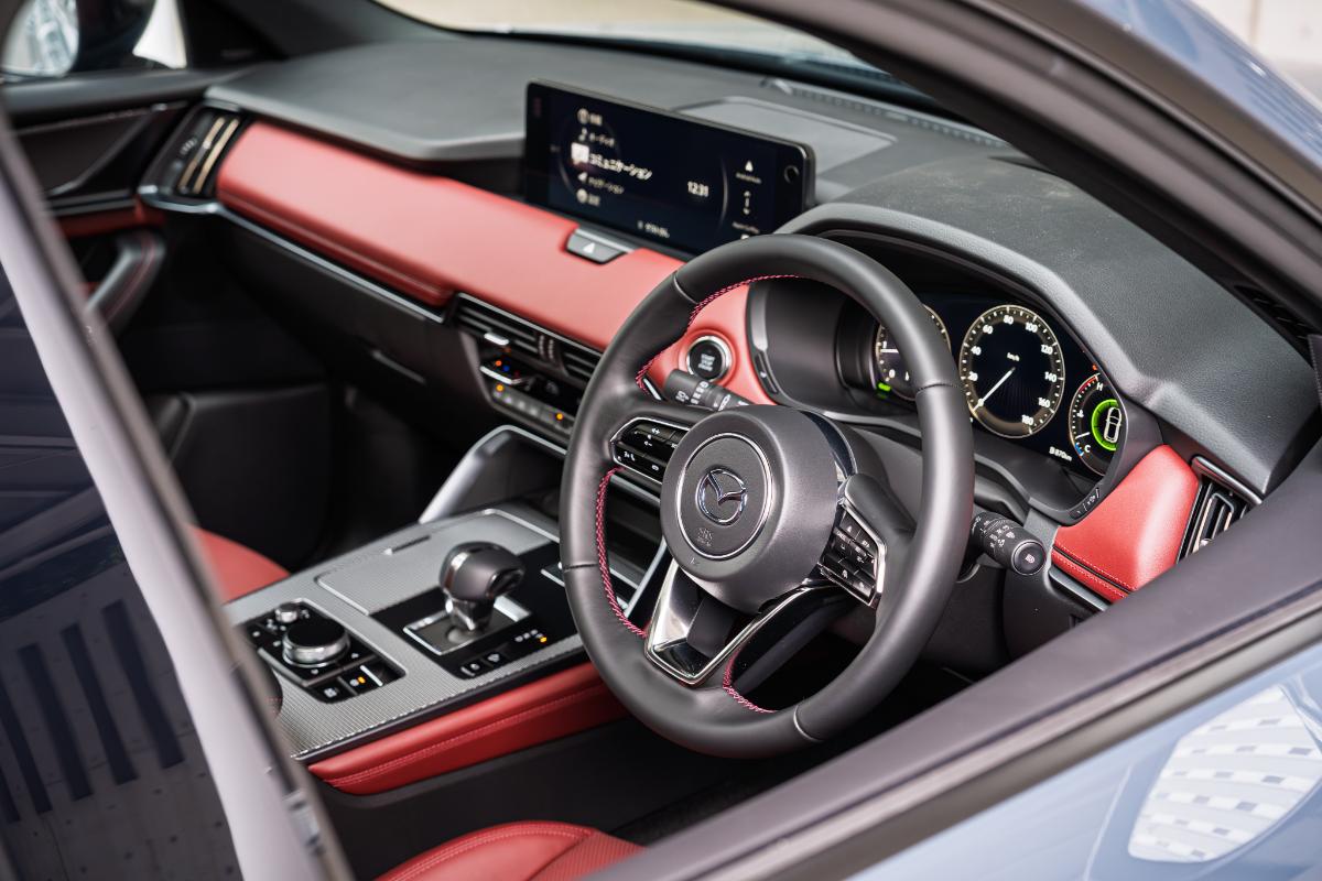 この内外装カラーの組み合わせを実車で見ると、これまで見たCX-60の中でも最もスポーティな雰囲気であると実感しました。