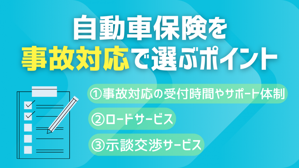 自動車保険の事故対応を正しく比較する際は、表面的な口コミやイメージだけでなく、実際の対応体制やサービス内容を確認し以下の点に着目しました。