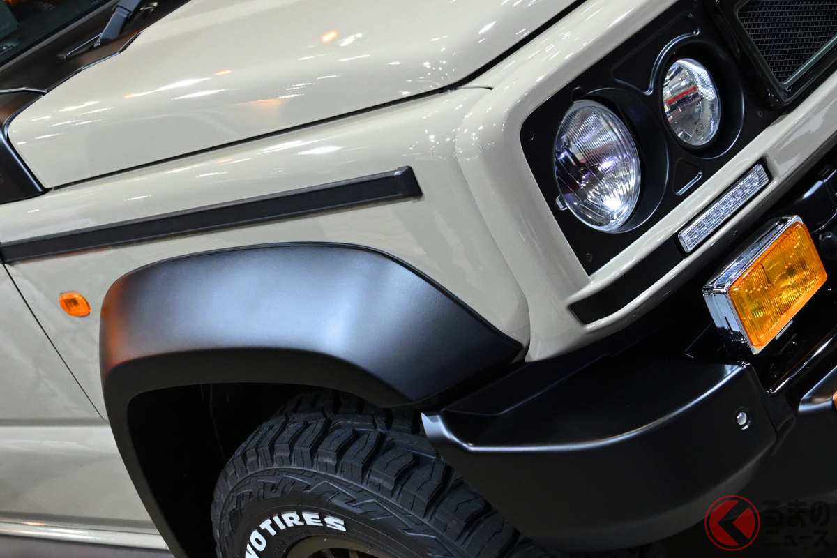 斬新「“丸目4灯”コンパクトSUV」に注目ッ! 「往年の名車」から着想を得た“レトロ顔”が魅力! 斬新「U字型ミラー」もカッコイイ! タフだけどお洒落なダムド「ジムニーノマド アルマータ」とは?
