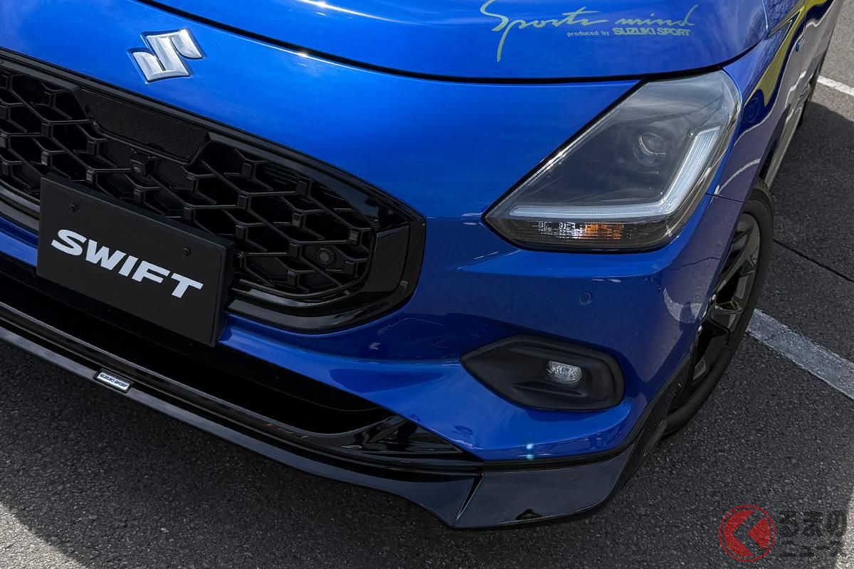 スズキ「小さなスポーツ仕様」初公開! 市販化は? 黒パーツ&「SUZUKI SPORT」エンブレム付与! スイフトエアロ仕様の反響上々で今後に期待