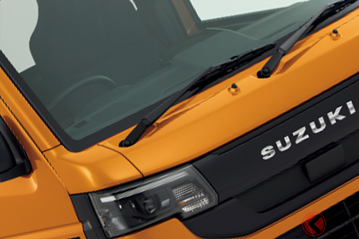 スズキ新型「軽トラック」発売! “ブラック仕立て”の専用デザイン&「SUZUKI」ロゴが目を惹く! 顔面刷新で「釣り目ライト」に進化! 4WD仕様や“5速MT”もあって楽しそうな「スーパーキャリイ Xリミテッド」とは?