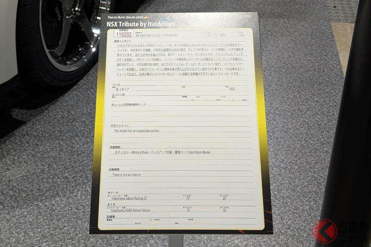 イタルデザインは2025年1月9日、ホンダ「NSX」に敬意を表した「Honda NSX Tribute by Italdesign(ホンダ NSX トリビュート バイ イタルデザイン)」を「東京オートサロン2026」で世界初公開しました。