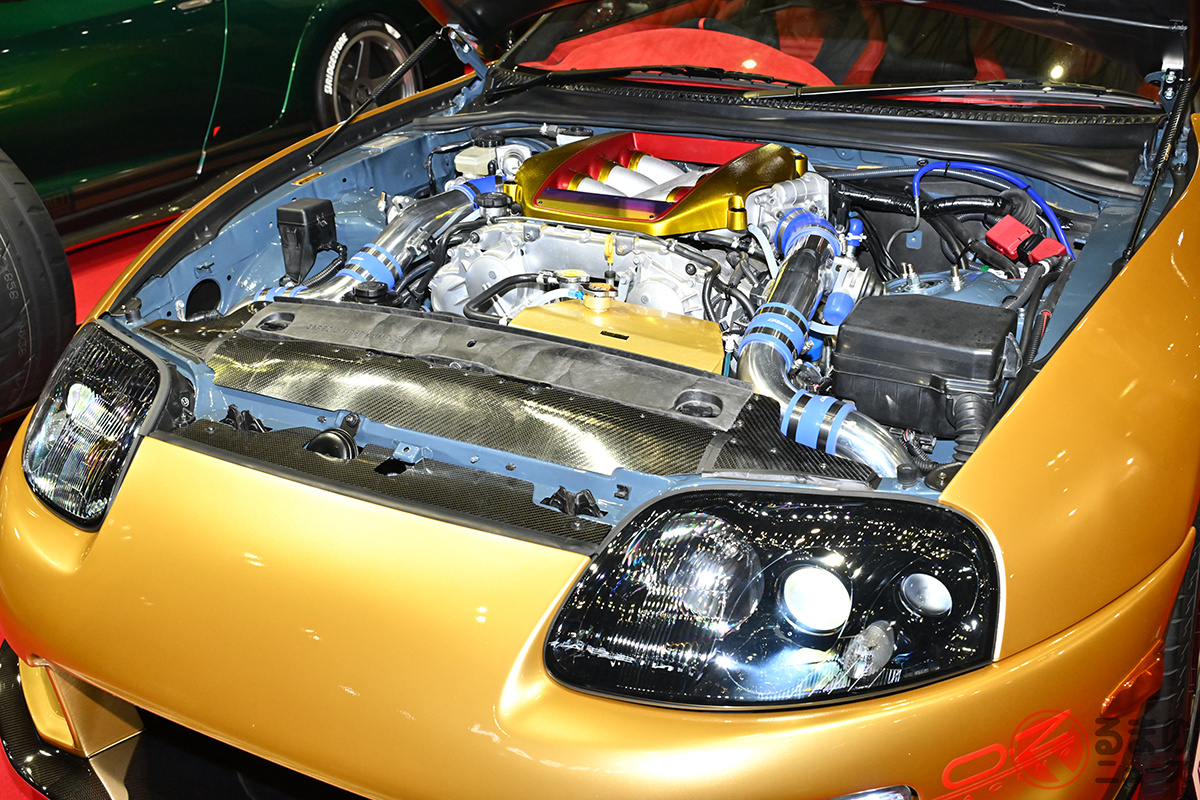 トヨタ「GT-Rエンジン搭載“スープラ”」世界初公開! 6速MT&「700馬力のV6ツインターボ」で“最高速”に挑戦! 伝説「ゴールドボディ」輝くトップシークレットのフラッグシップマシン「VR-Supra」 TASで披露