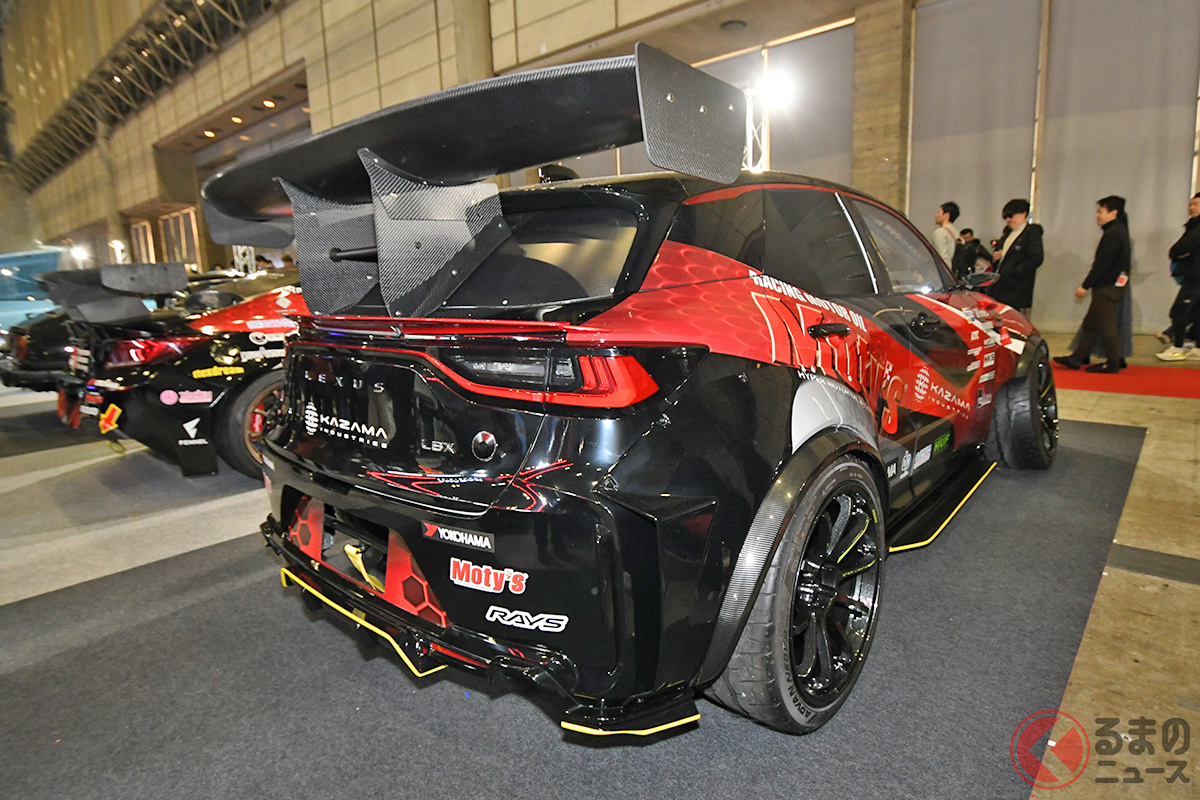 レクサス「5ドアSUV“FRスポーツカー”」初公開! 全長4.2m級ボディに3.6リッター「スープラ直6」搭載! ド迫力「ワイドフェンダー」も超カッコいい“SUV初の実戦”マシン「LBX モリゾウRR“Drift”」TAS2026でお披露目
