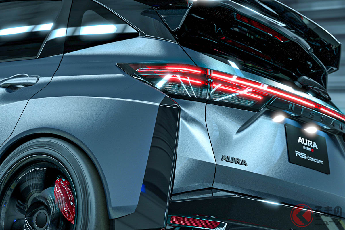 日産「新“4WDスポーツカー”」世界初公開! 全長4.2mの「ちいさなボディ」×高性能チューンドイーフォース搭載! 迫力エアロもイイ「AURA NISMO RS」とは