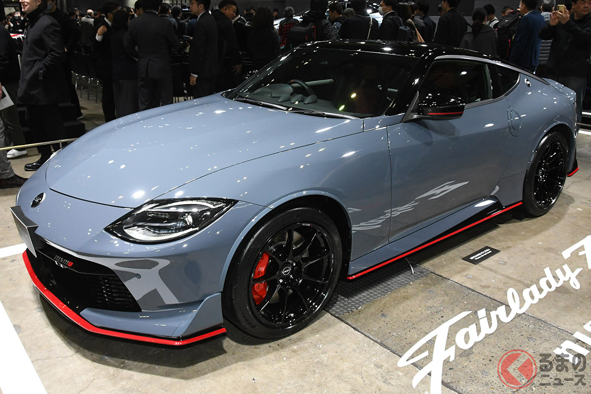 日産「新フェアレディZ NISMO」“実車”初公開! 待望の6速MT搭載×軽量化&専用チューンで走りがスゴい! 歴代「Z」バッジ採用のフロントがイイ「最新モデル」何が変わった?