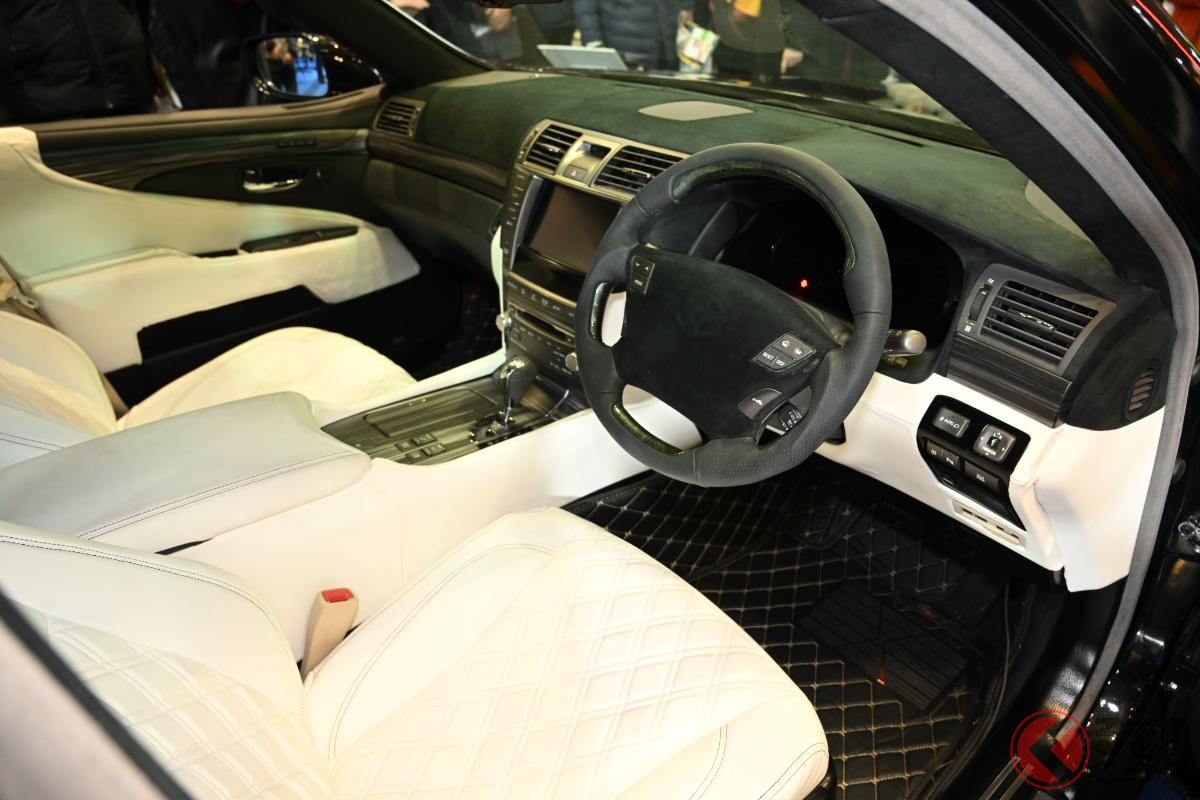 斬新「ヴェルファイアセダン」初公開に反響殺到! 「本気で買いたい」「欲しいわ」「“光る豪華内装”がたまらない」の声も! 「V8エンジン×FR」で高級感ハンパないレクサスLSベースのNATS「大型セダン」に熱視線!