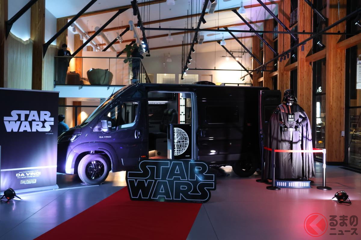 2100万円超え! 斬新「“スターウォーズ”仕様バン」が凄かった! 「ダースベイダー」も乗ってそうな「デュカト」ベースのトイファクトリー「ダ・ヴィンチ」スターウォーズモデルとは