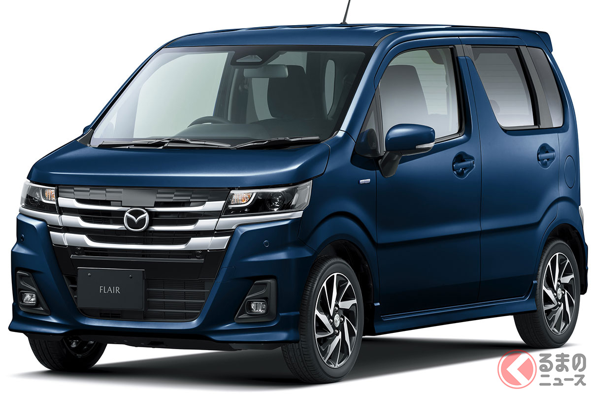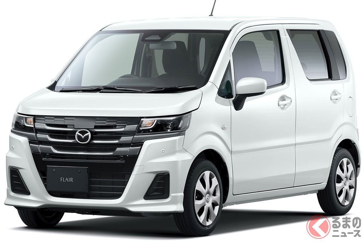 新車145万円! マツダ新「“4人乗り”軽ワゴン」発表! ワイド感あふれる「精悍デザイン」&先進ハイブリッド搭載!「リッター22.6km」の“低燃費”も魅力な「新フレア」登場!
