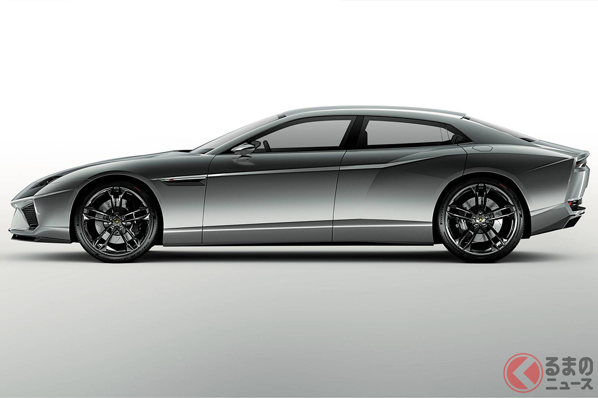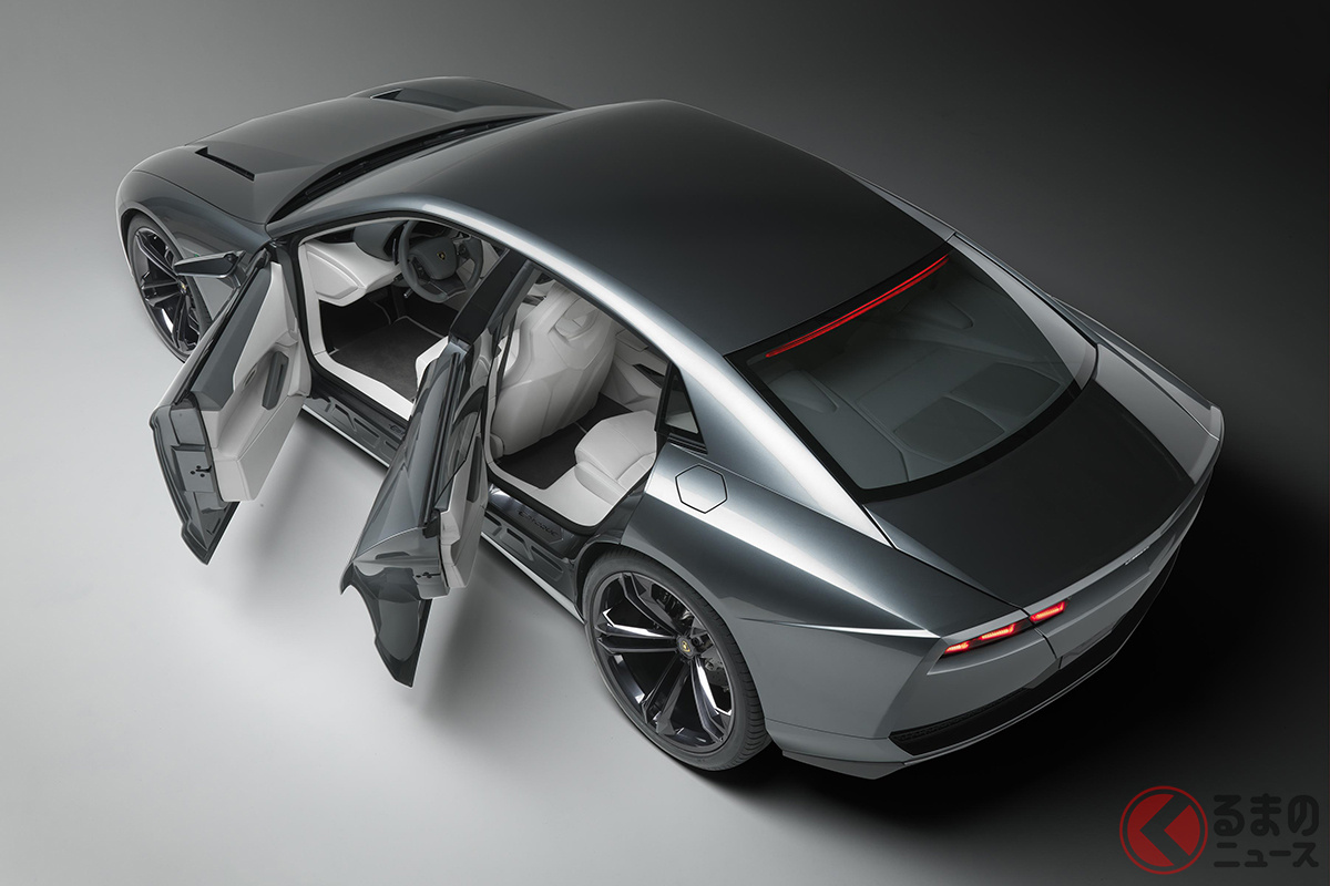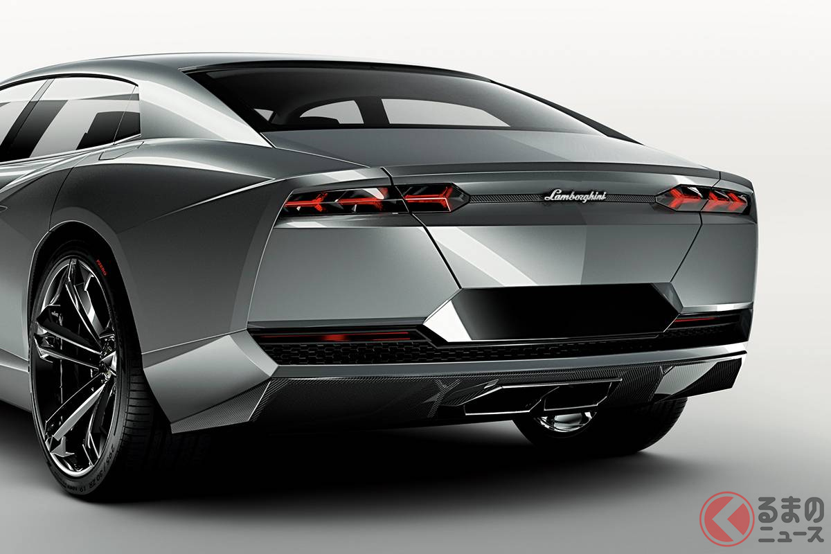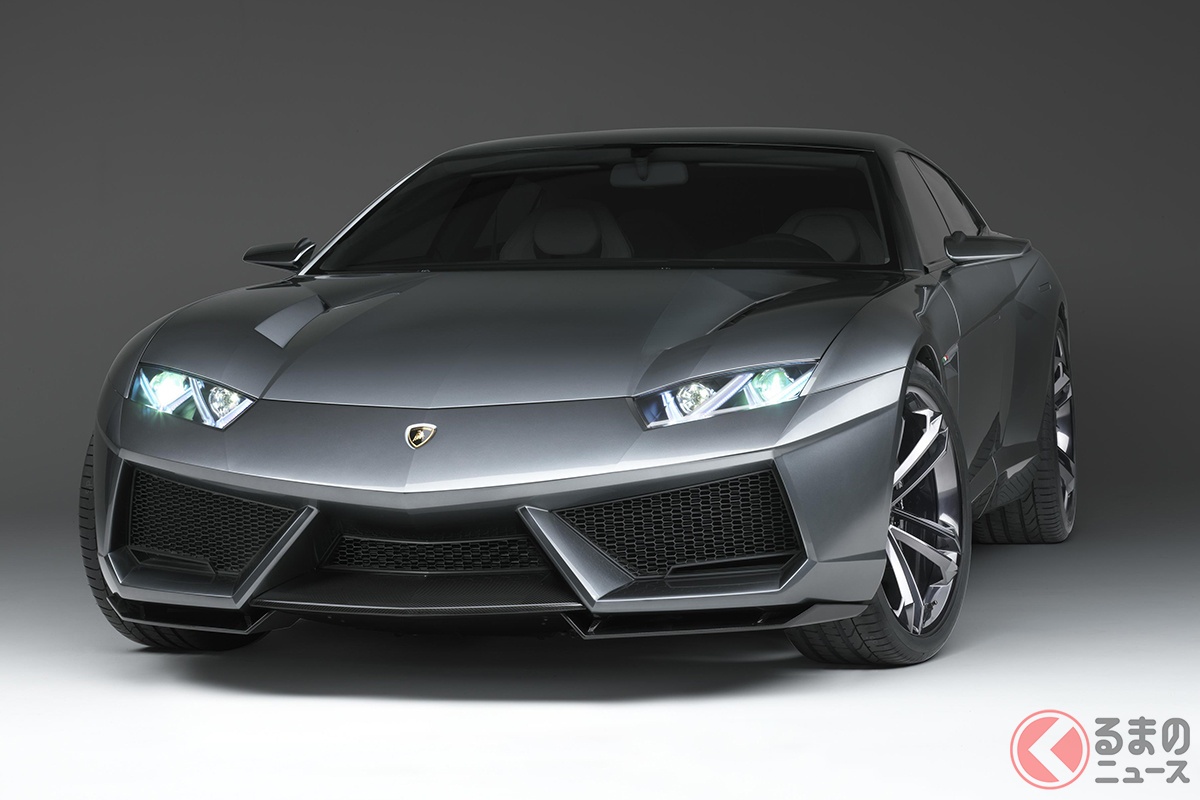 斬新「“4WD”スポーツカー」が凄い! ながーーい4ドアボディに「V10エンジン」搭載! 独自の「航空機デザイン」がカッコイイ! フランスで公開のランボルギーニ「エストーケ」とは?