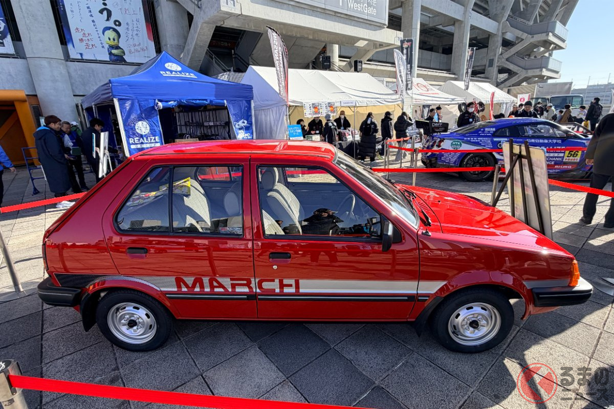 2026年1月17日、近藤真彦監督率いるKONDOレーシング主催の「第13回イイコトチャレンジ」が横浜・日産スタジアムで開催されました。会場には東京オートサロン2026で話題となった「マッチのマーチ」が登場。日産自動車大学校の学生が「AT車をMT化」したという異色のレストア車両について、近藤真彦氏がそのこだわりを語りました。