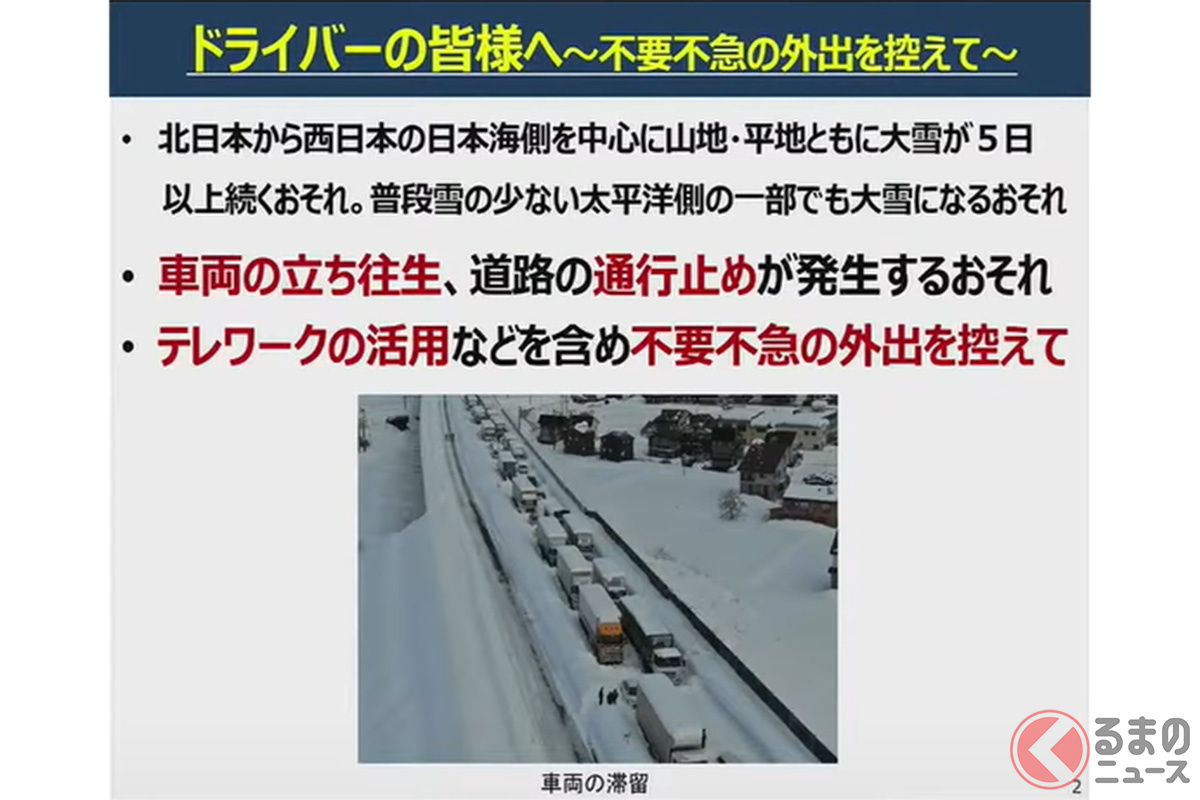 国交省、本気の警告「夏タイヤで走らないで」「不要不急の外出は控えて」 最強寒波で“立ち往生”多発の警戒、ドライバーが気をつけるコトは?