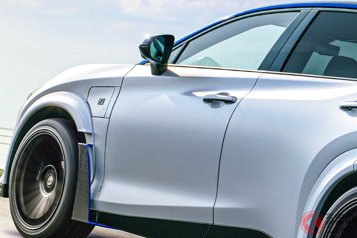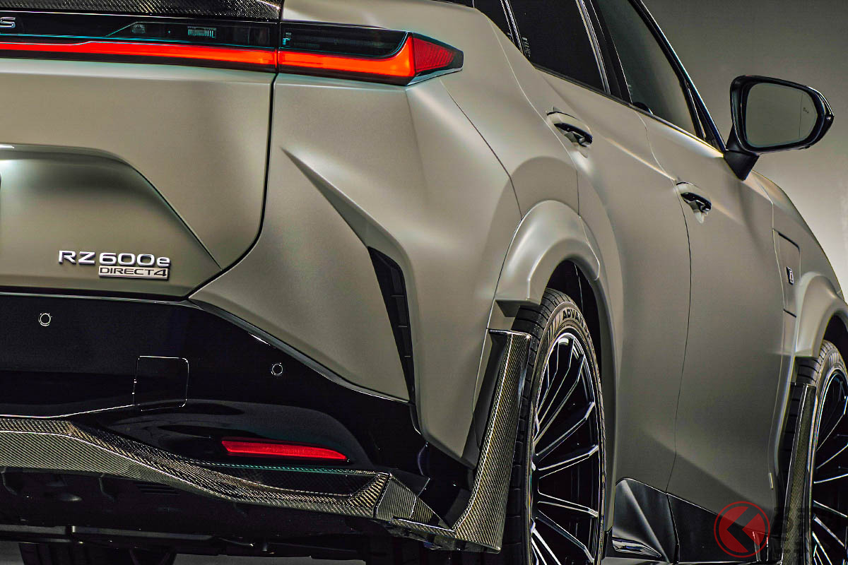 レクサス新型「SUV」登場! 400馬力超えの「スポーティ」モデル! “2枚”の大型ウィング&迫力エアロモデルもイイ「RZ」が販売店でも話題に