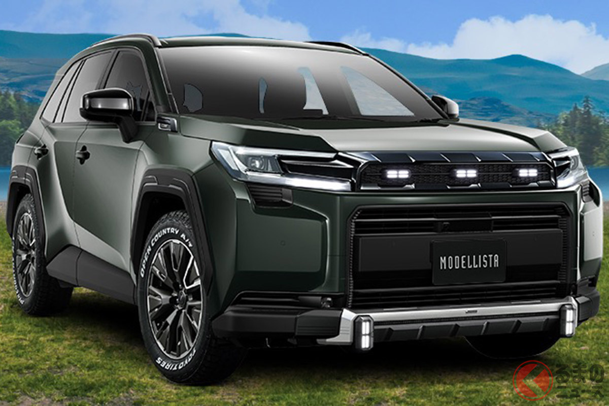 トヨタ「“新型”RAV4 エアロ仕様」に注目! 斬新「ピカッと光るグリル&アゴ」が超カッコイイ! 73万円でド迫力にイメチェンする「モデリスタ for Adventure」の魅力とは