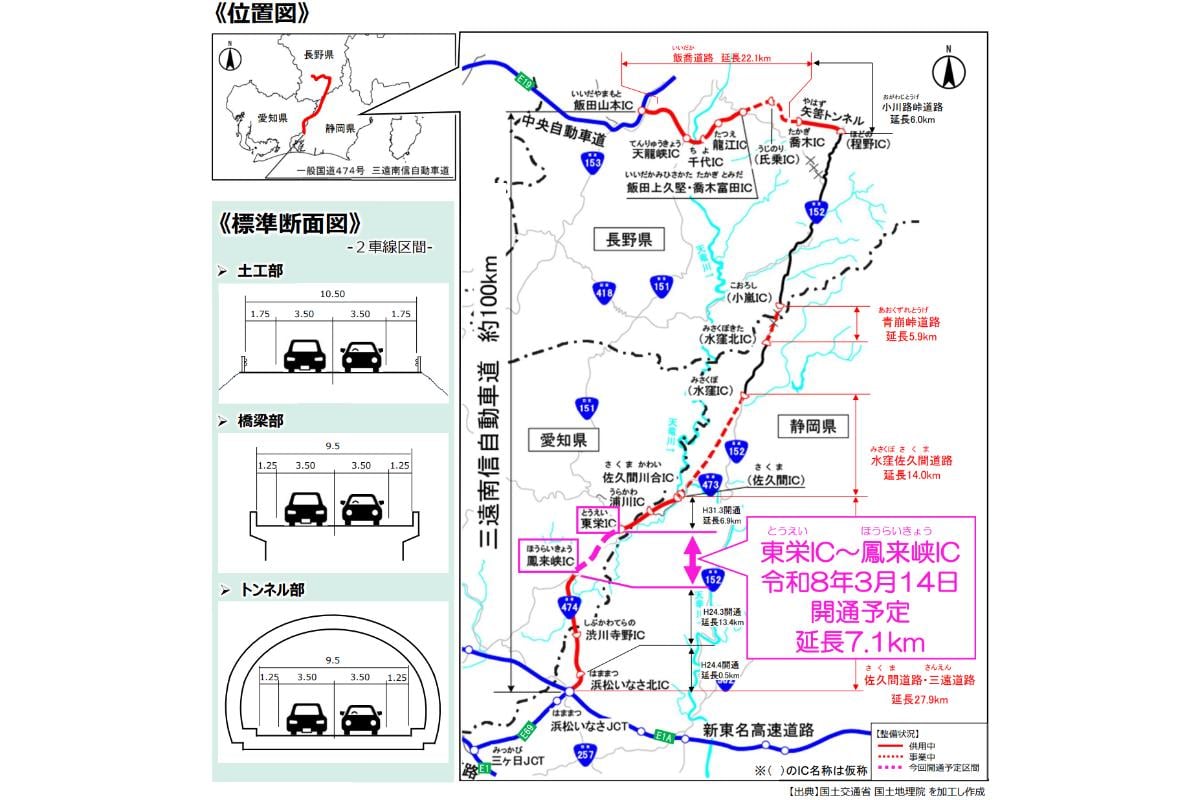 愛知県の三遠南信自動車道・東栄IC~鳳来峡IC間が2026年3月14日に開通すると発表されました。