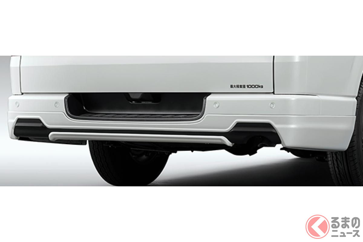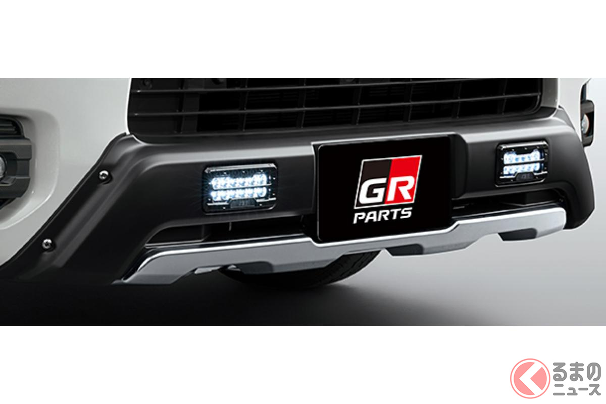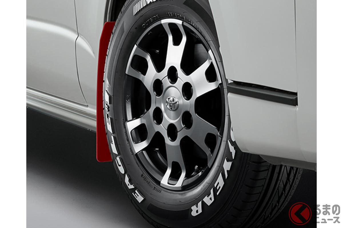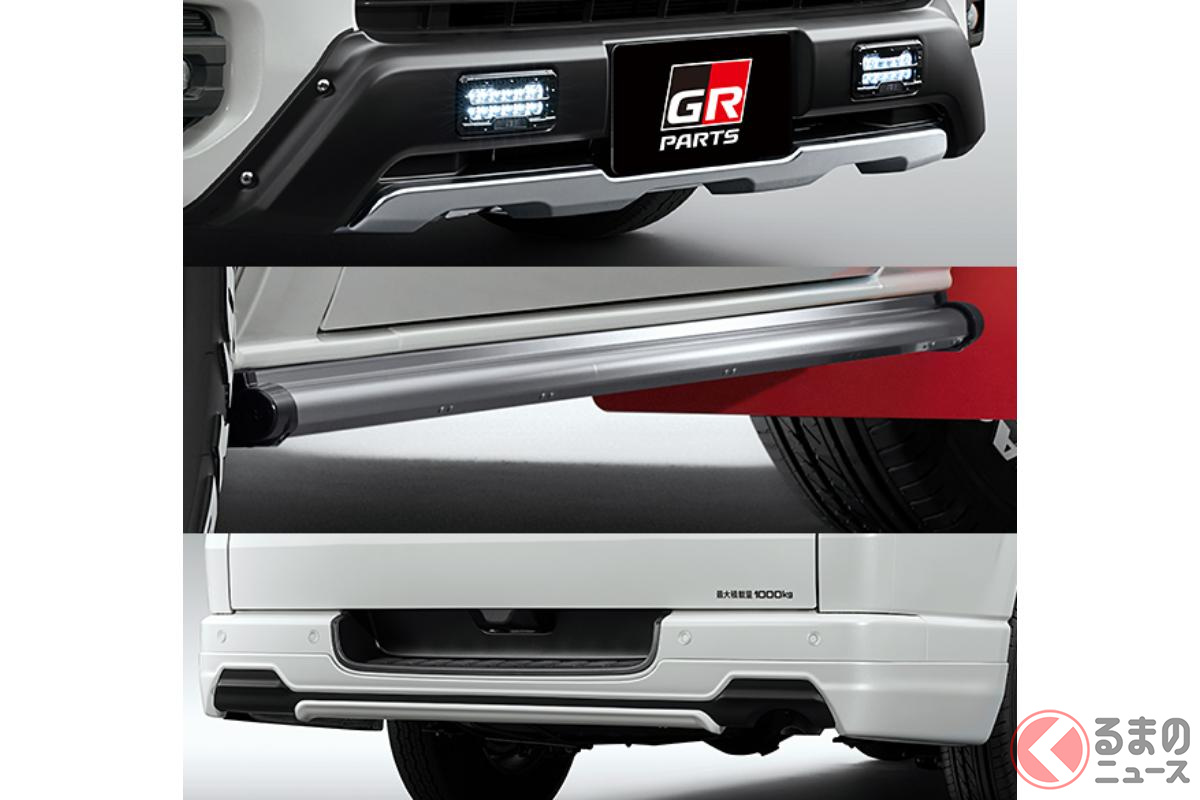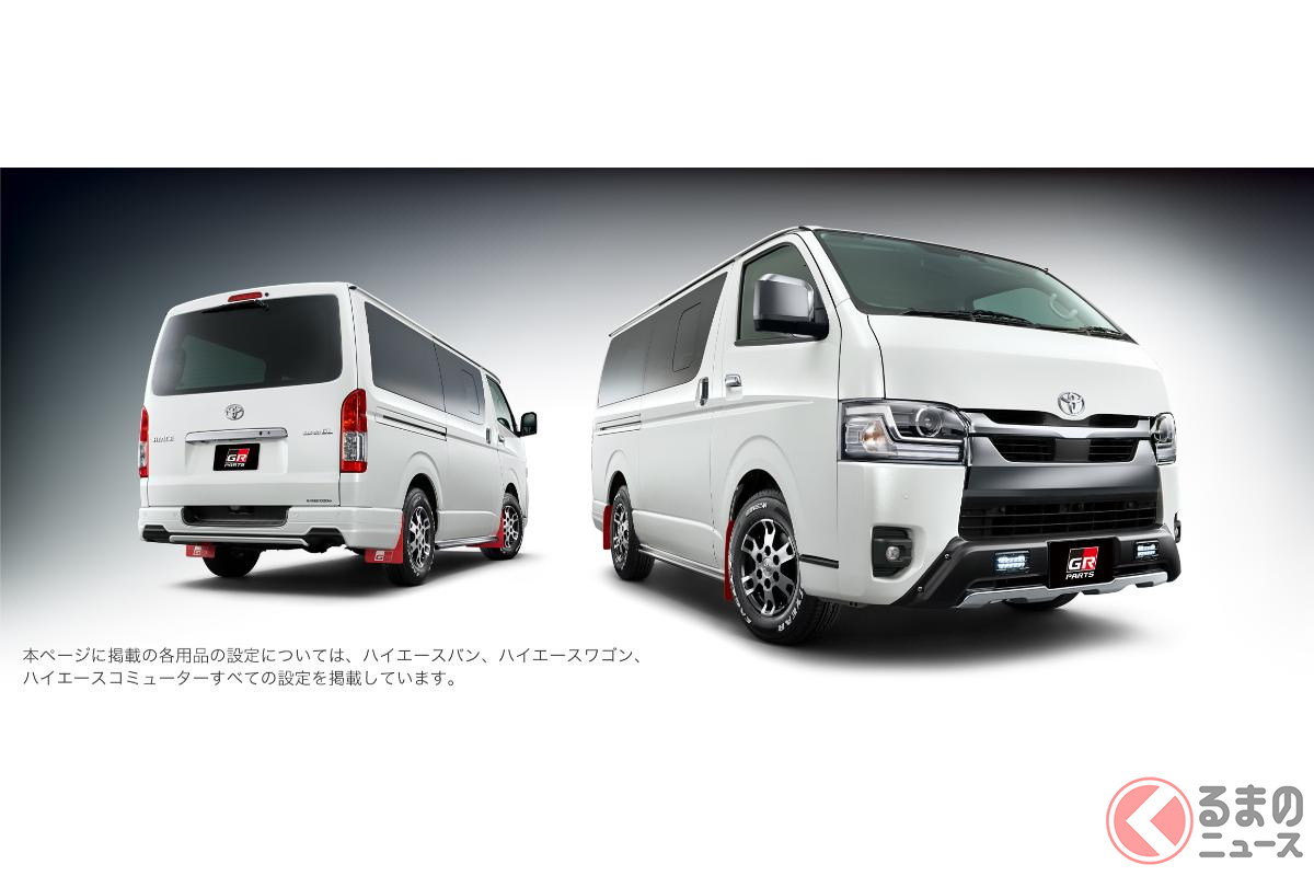 トヨタ「“新”ハイエース SUV仕様!?」に注目! 23年目の進化遂げた「商用バンの大定番」が「ゴツいバンパー」×マッドフラップ装備! たった「23万円」でイメチェンする「GRパーツ」が凄い
