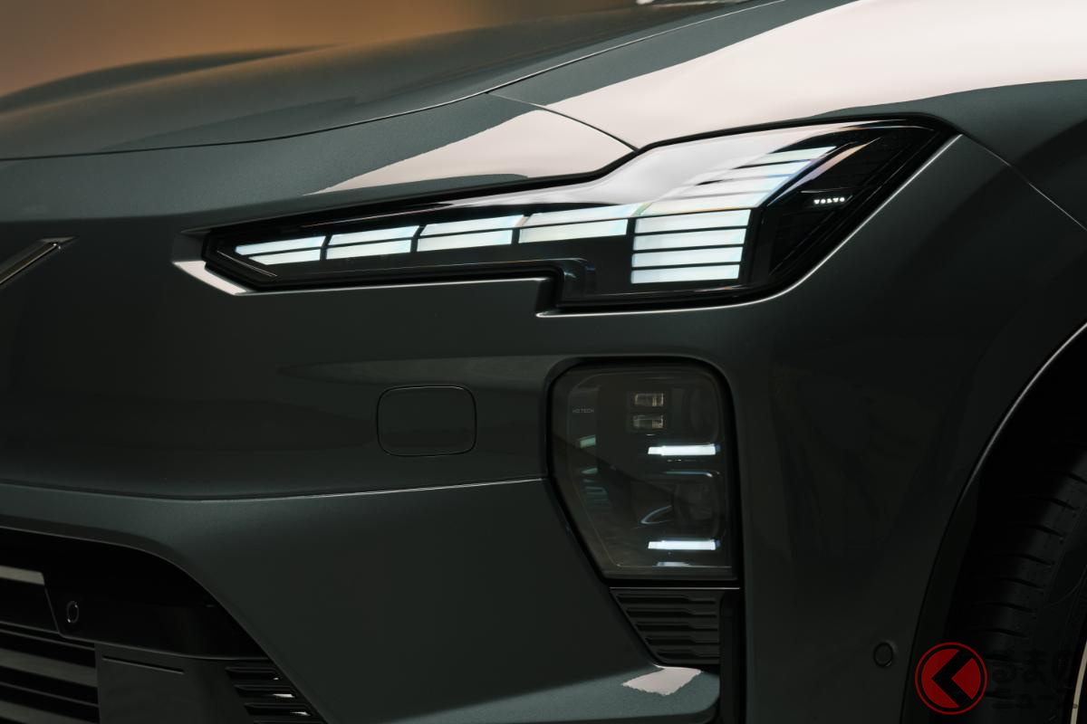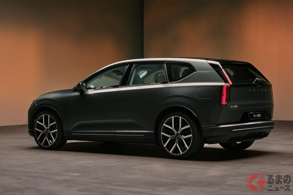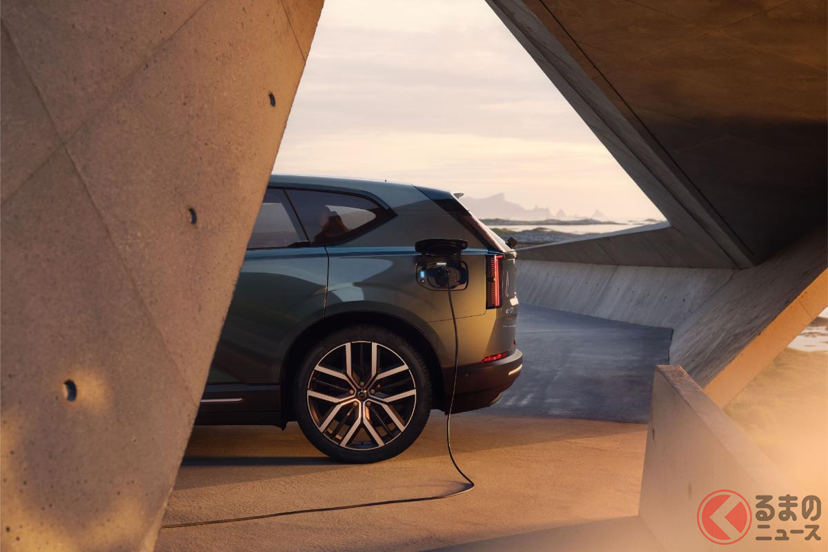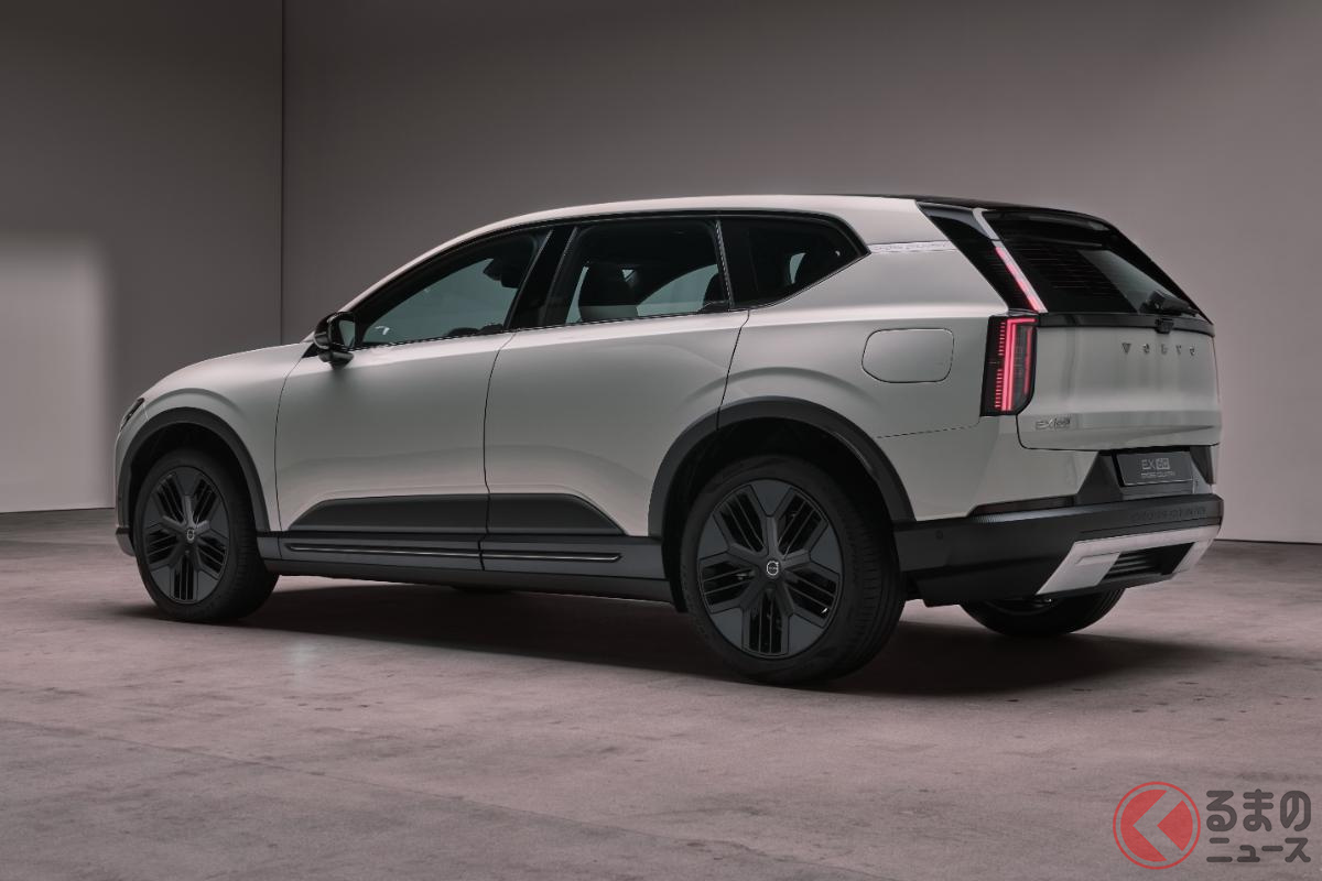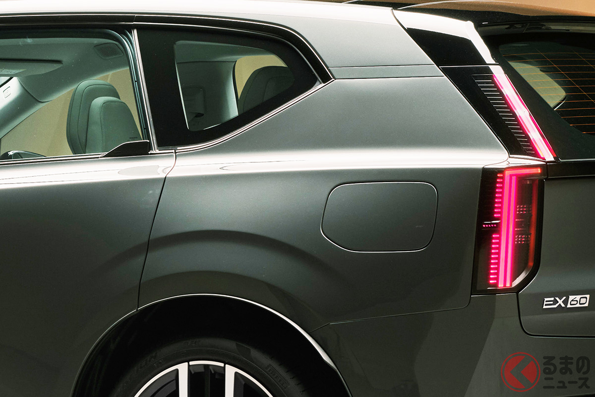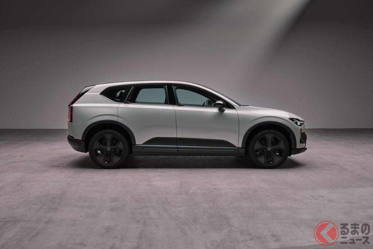 新型「“5人乗り”SUV」世界初公開! スポーティな「680馬力」仕様&全長4.8mのツルツルボディ採用! 斬新「“光る”ウイングドアノブ」がカッコいいボルボ「EX60」スウェーデンで登場