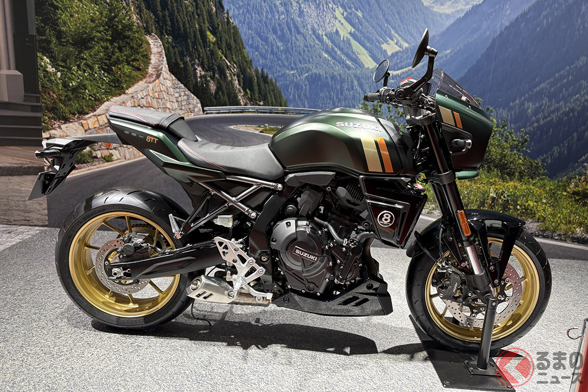 スズキ「“新型”ネオレトロバイク」発売! 丸目&ビキニカウルで1970年代のロードレーサーをイメージ! 「GSX-8TT」がブラックとマットグリーンの2色を携えて登場!