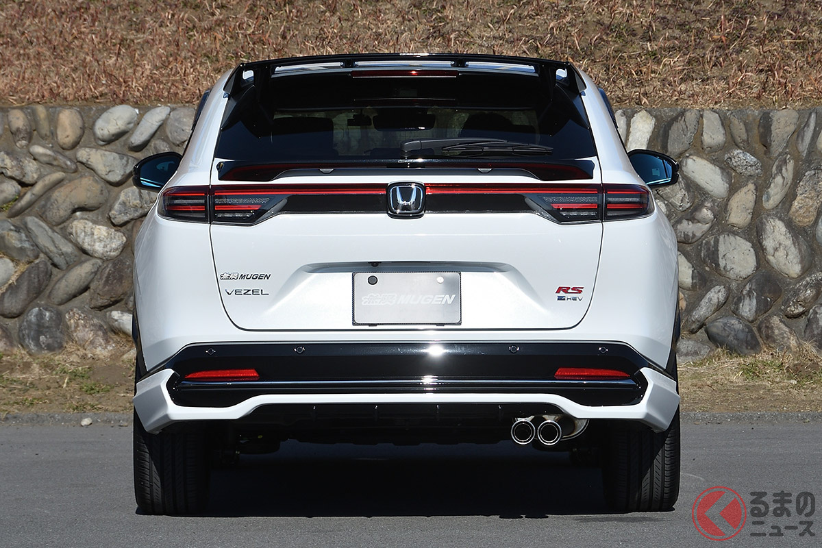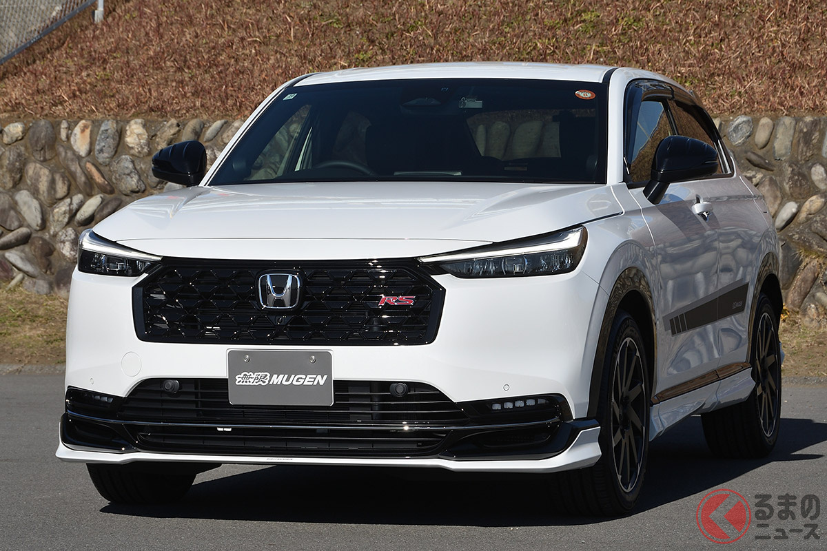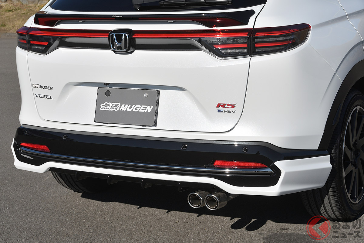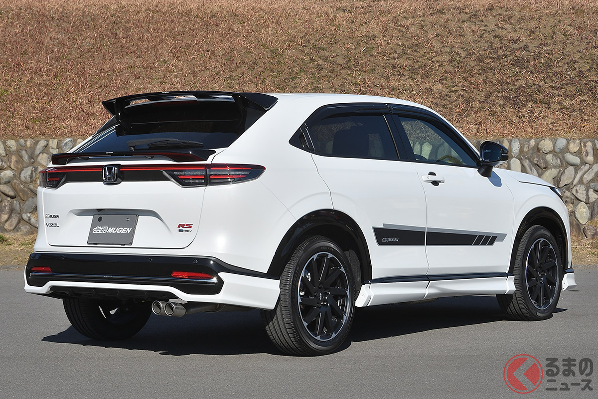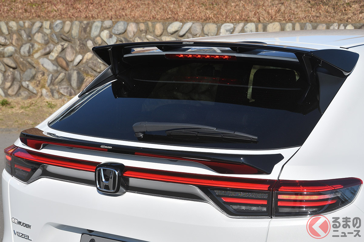 ホンダ「スポーティSUV」4年ぶり復活! 2段構えのリアスポイラー×専用エアロがスゴい! 地を這う低重心化で実用性も高めた「ヴェゼルRS」アグレッシブな「無限仕様」がヤバい!