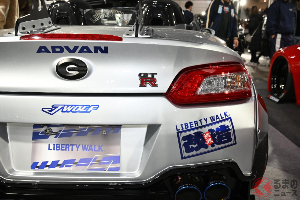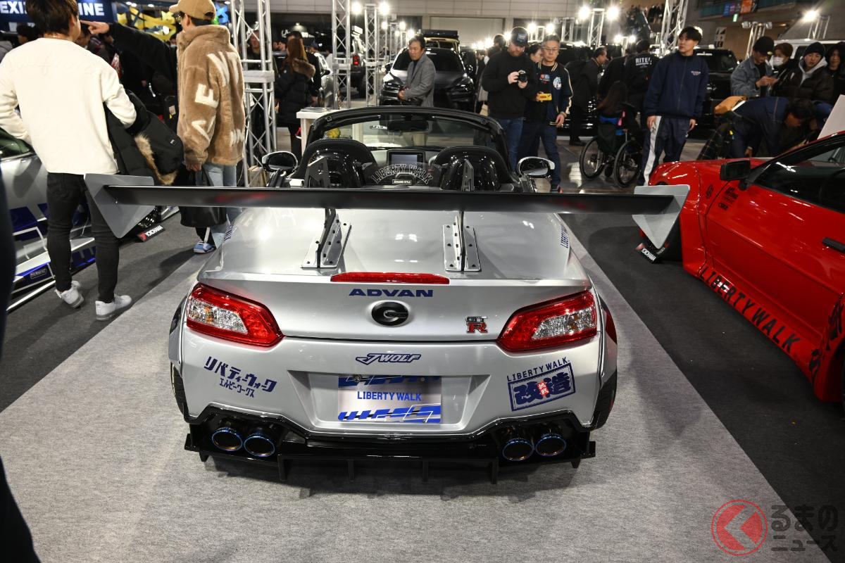 リバティーウォークは、東京オートサロン2026において「lb★nation ダイハツ コペン GT-K タイプ2」を出展しました。日産「GT-R」のようなルックスが特徴のこのカスタムカーは、いったいどのようなモデルなのでしょうか。