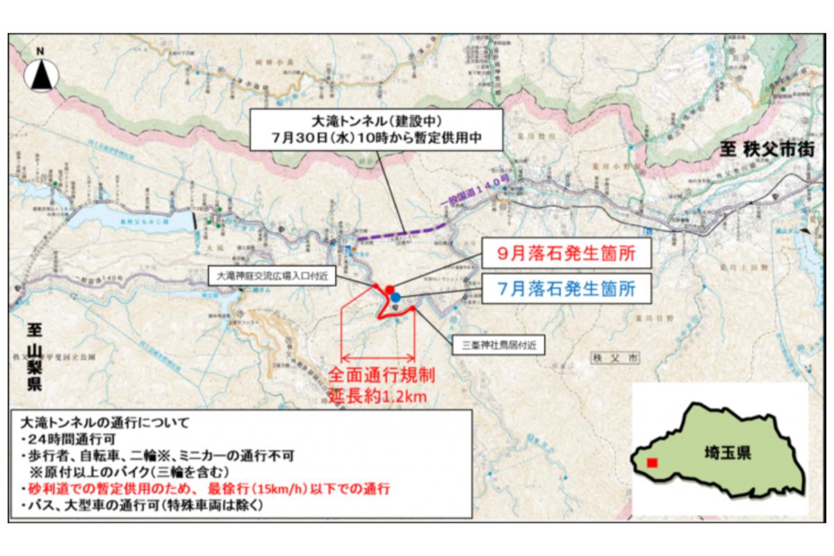 埼玉〜山梨の「最短ルート」が“開通”! 「すごい落石×2」で作りかけ「ガッタガタトンネルルート」経由にした“暫定措置”も終了! 三峰エリアの国道140号が通行止め解除