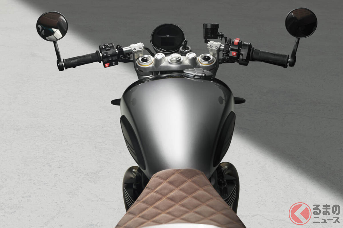 “超レトロ”な「新型カフェレーサー」発売! セパハン&シングルシートで低くコンパクトなシルエットを構築! 世界限定800台のトライアンフ「スピードツイン1200カフェレーサーエディション」登場!