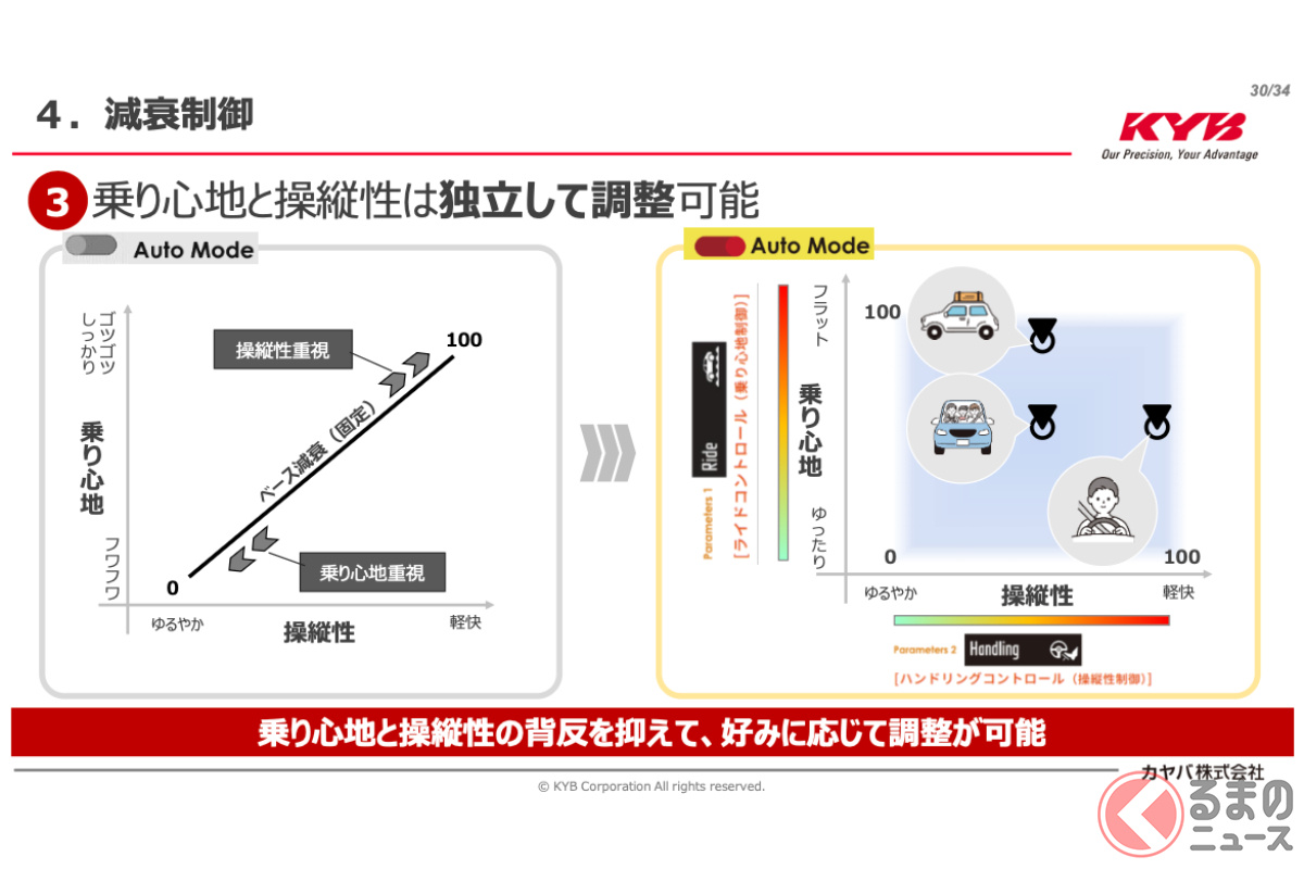 カヤバは2026年1月29日、スマホアプリで減衰力を自在に調整できる次世代電子制御サスペンション「ActRide(アクトライド)」を発表しました。直感操作で、乗り心地と操縦性を高次元で両立。従来の「足回りのセッティングは専門知識が必要」という常識を覆す、アフターマーケット向けの新システムです。第一弾はトヨタ「ハイエース」用を展開。仕事からレジャーまで幅広い用途に対応する本製品の魅力を解説します。