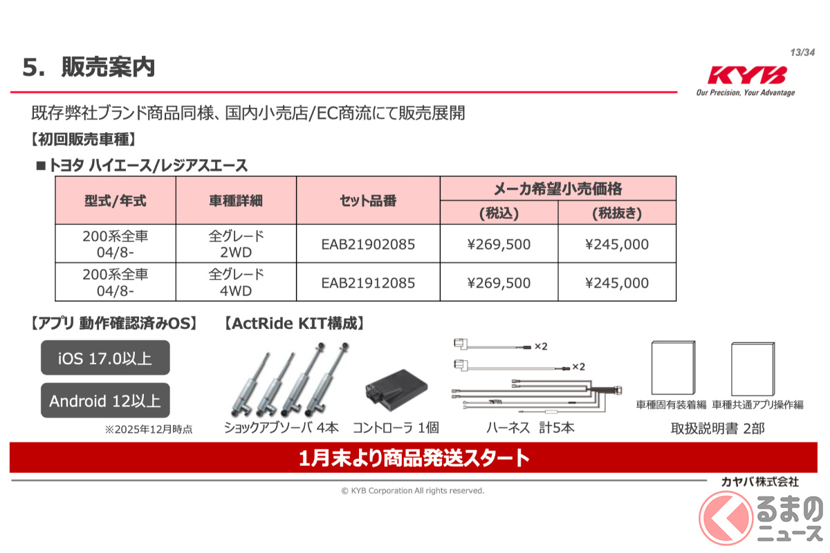 第一弾は「ハイエース」用から! スマホで「足回り」を操る時代へ! カヤバが革新的な電子制御サスペンションシステム「ActRide」発表!