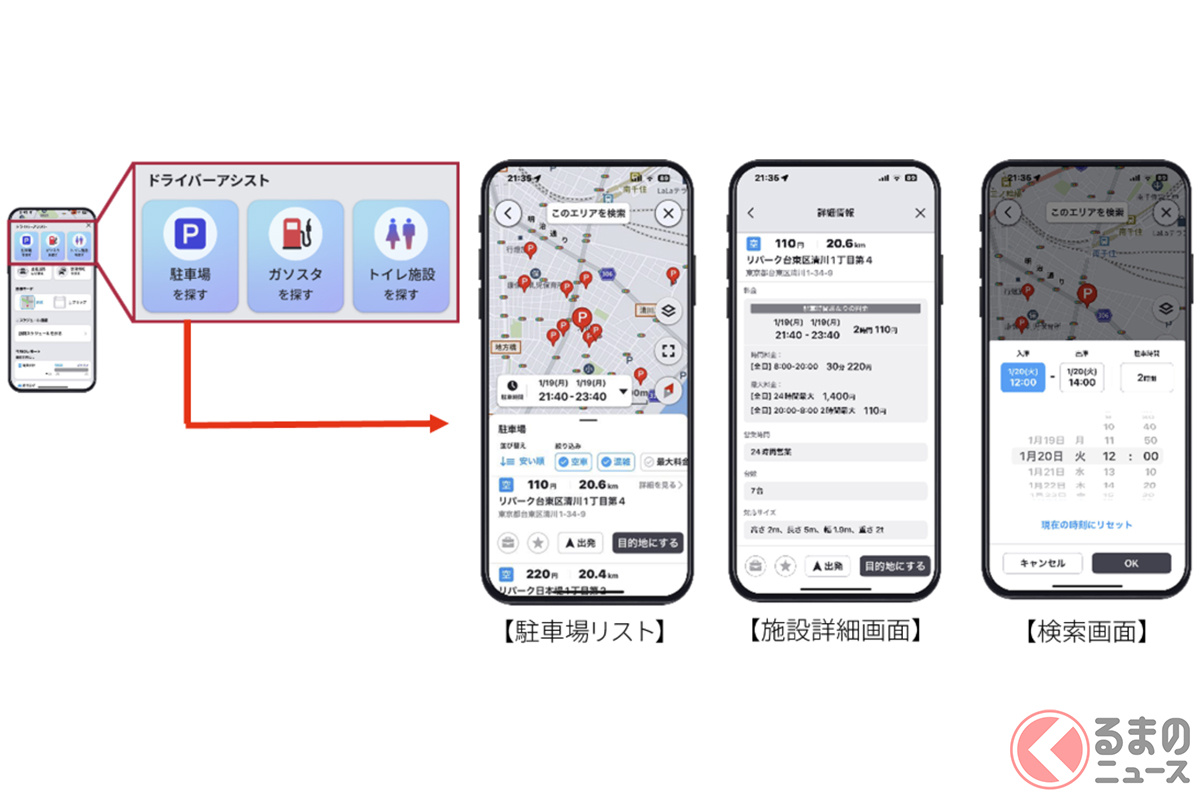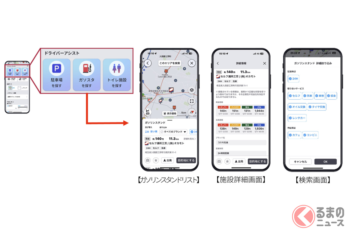 すいてる? 安い? 駐車場やガソスタの詳細絞り込み検索OKに! パイオニアのカーナビアプリ「COCCHi」がアップデート プレミアムプランでアメダス降雨情報も