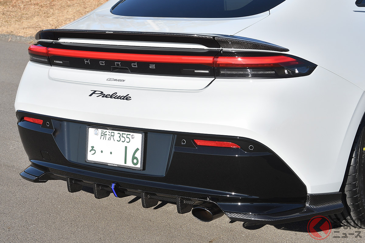 ホンダ「“伝説”のプレリュード」登場! 美しすぎるカーボンエアロדダイヤモンドブラック”輝く専用アルミがスゴい! 走りを追求した無限のボディキット「スペックIII」とは!