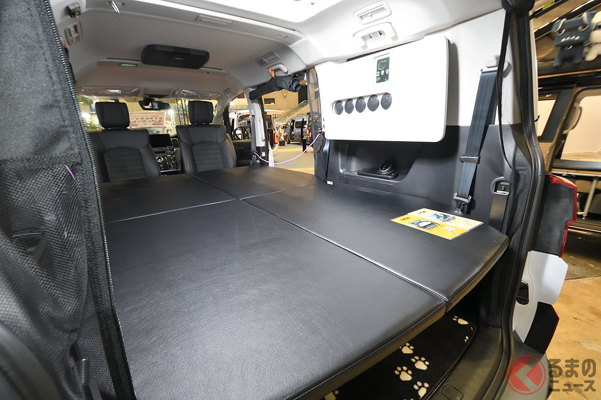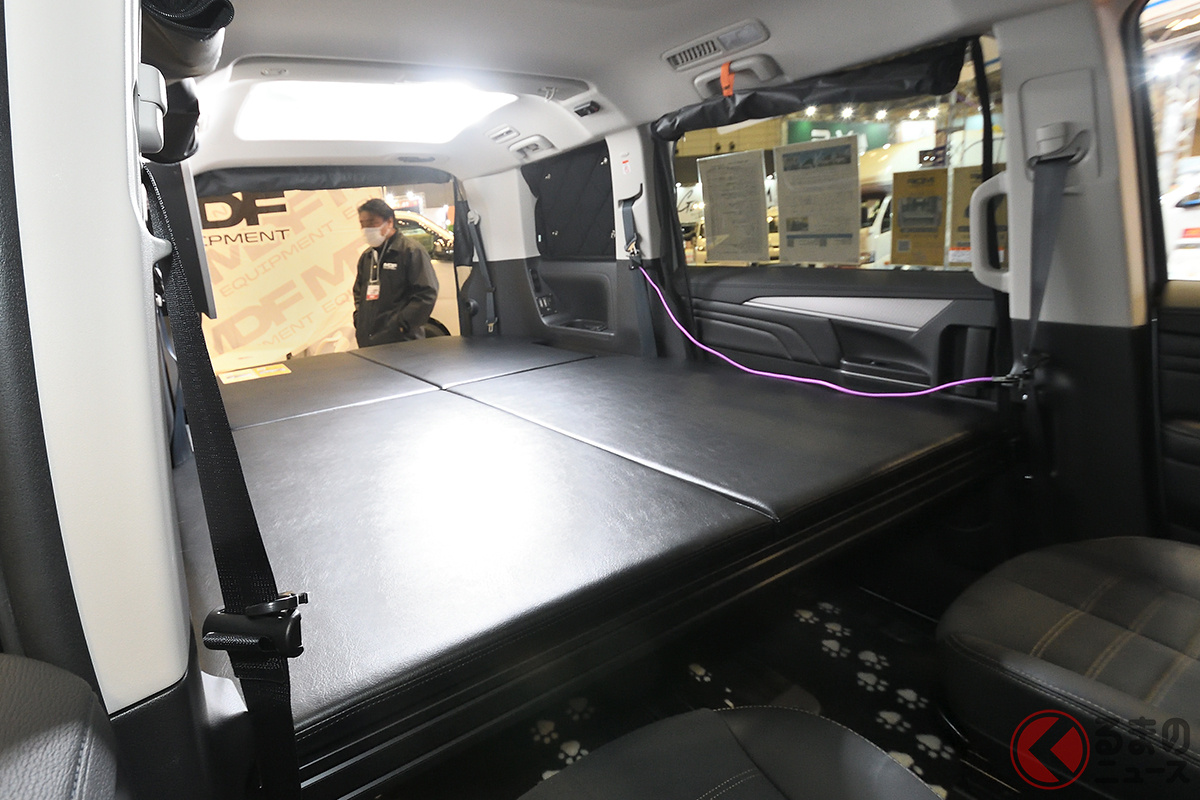 三菱の「“2階建て”新型デリカD:5」!? “大人4人”が寝られる「最強の車中泊仕様」公開! MDFがマイナーチェンジ版の新型キャンパー「D:POP」カスタム仕様をお披露目