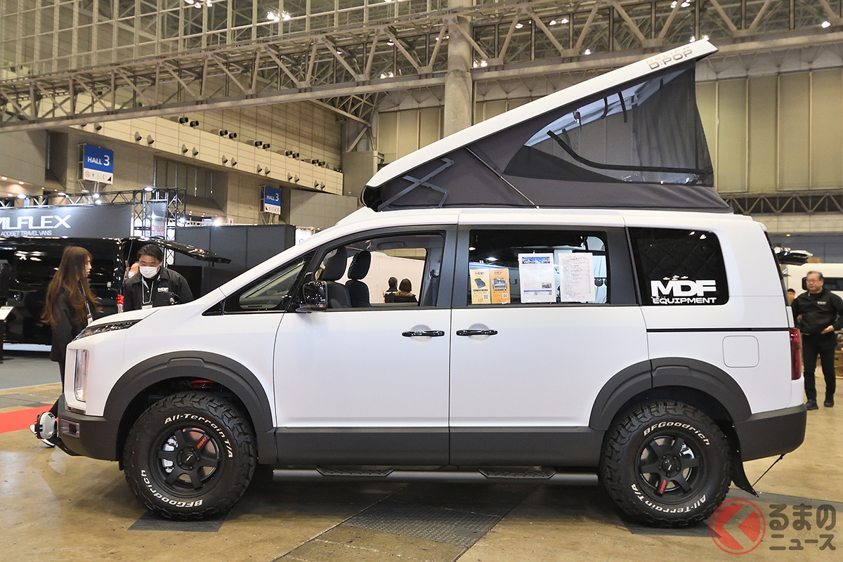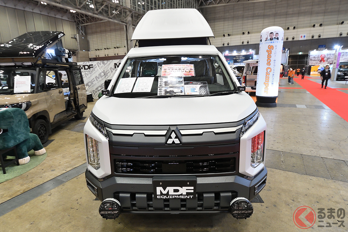 三菱車のキャンピングカーを得意とするMDF EQUIPMENTは、「ジャパンキャンピングカーショー2026」に、マイナーチェンジを実施したばかりの新型「デリカD:5」のキャンピングカー「D:POP」を展示して注目を集めました。