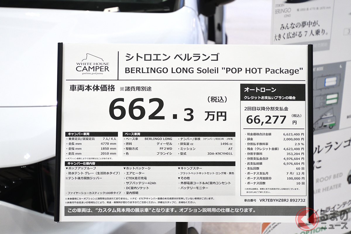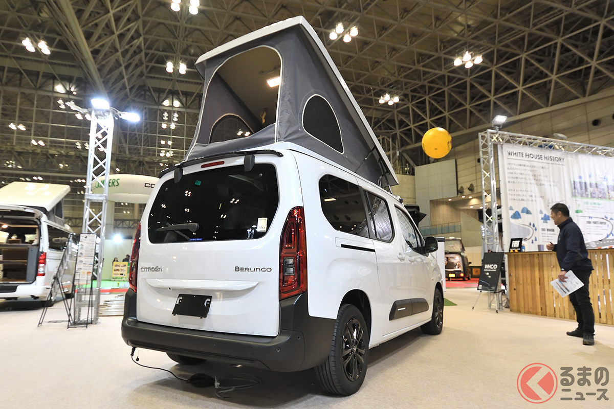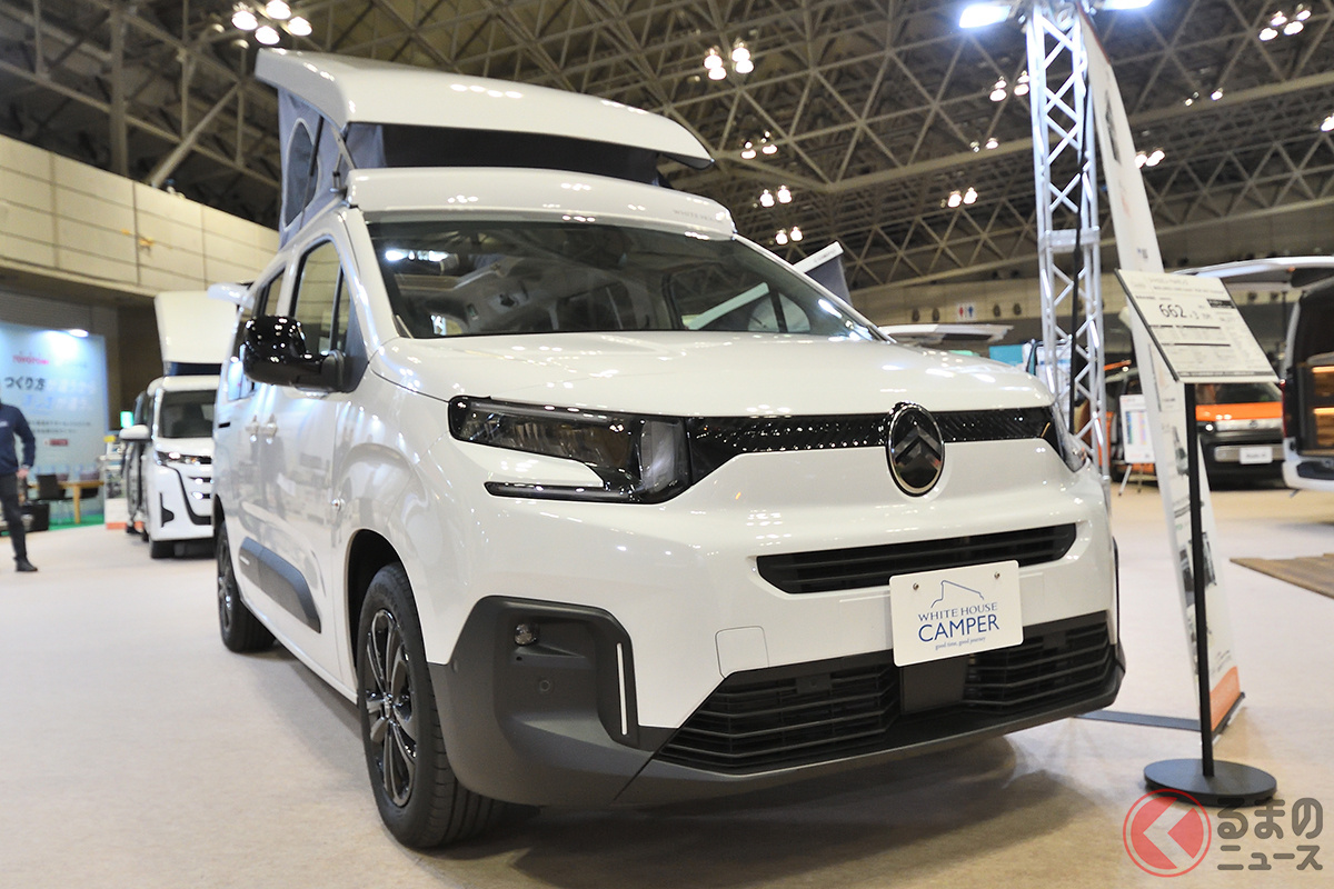 「ジャパンキャンピングカーショー2026」に、ホワイトハウスキャンパーはシトロエン「ベルランゴ」ベースのキャンピングカーを展示しました。輸入車ベースのキャンピングカーとして大きな魅力を持っています。