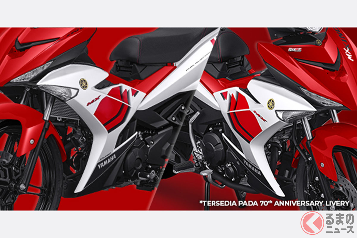 価格26万円! ヤマハ「“新”小排気量バックボーンスポーツ」登場! スクーター風の外観×マニュアルミッションの個性派モデル! 「MX King 150 70th LIVERY」インドネシアで発表