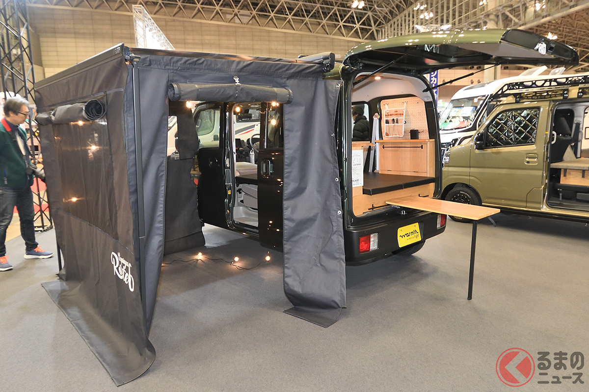新車250万円以下! 大人「2人」寝られる“お手ごろ”「軽バンキャンパー」がスゴい! 本格四駆“ジムニー”顔×木目内装もカッコいいルートシックスのキャンピングカー「ウォームスライト」とは