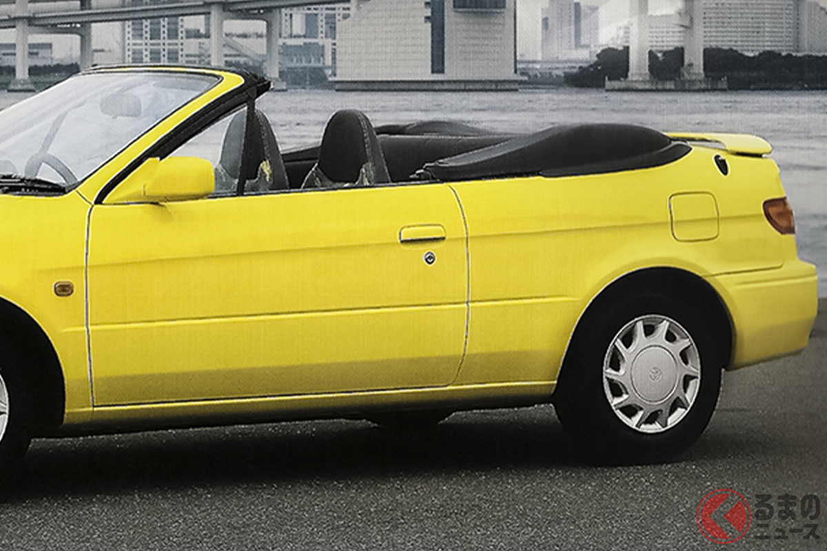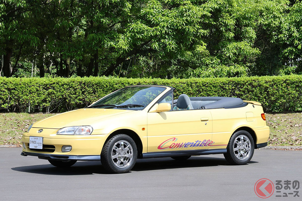 全長4.1m!トヨタ斬新「小さなオープンカー」実車公開! めちゃ使える「4人乗り」軽快ボディに“ちょうどいい”「約1.5リッターエンジン」搭載! 端正デザインの“デートカー”「サイノス」が凱旋!